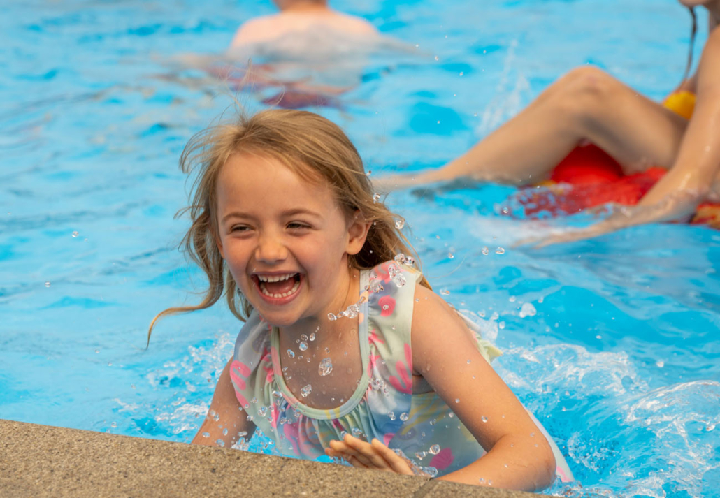 Her kan børnene plaske løs i vores 27 °C opvarmede pool. På legepladsen venter masser af sjov: Djurslands største hoppepude, trampoliner, legetårn, karruseller og meget mere – perfekt til at få nye legekammerater.